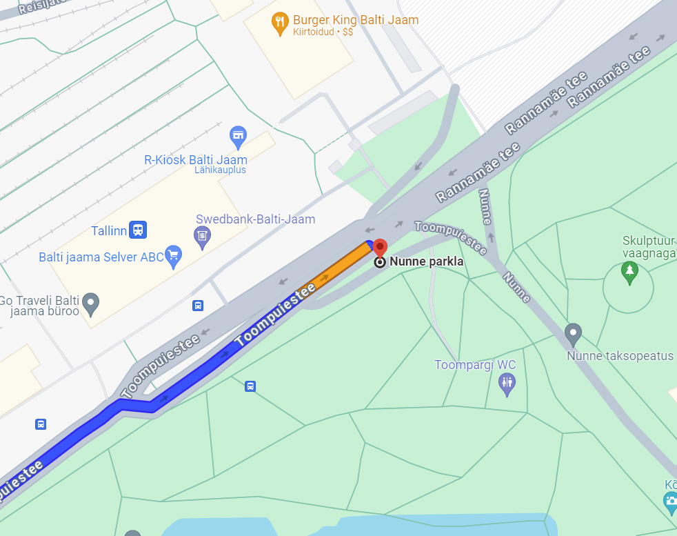 The bus from Tallinn to our guesthouse leaves on Sunday the 14th at 16:00 (4 pm) from the bus parking lot "Nunne parkla" near the main train station "Balti jaam" (Baltic station), see the map on the right. Please arrive at 15:45 at the latest so we can leave on time. The bus belongs to the company Hansabuss.